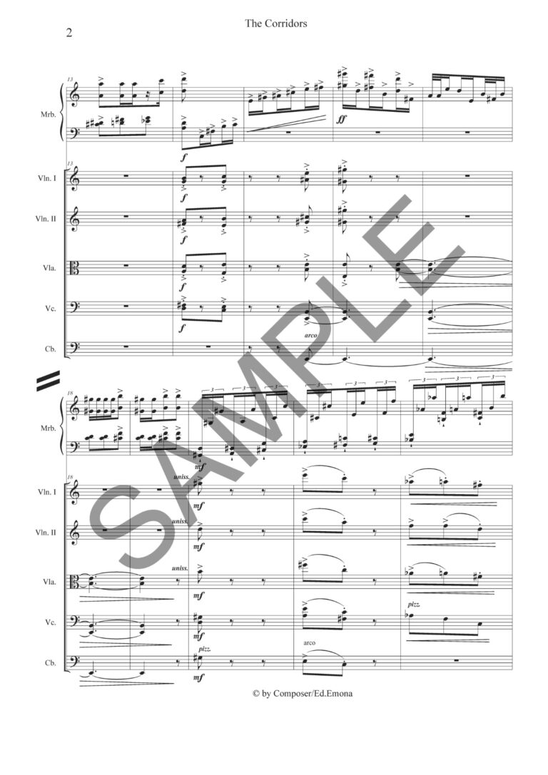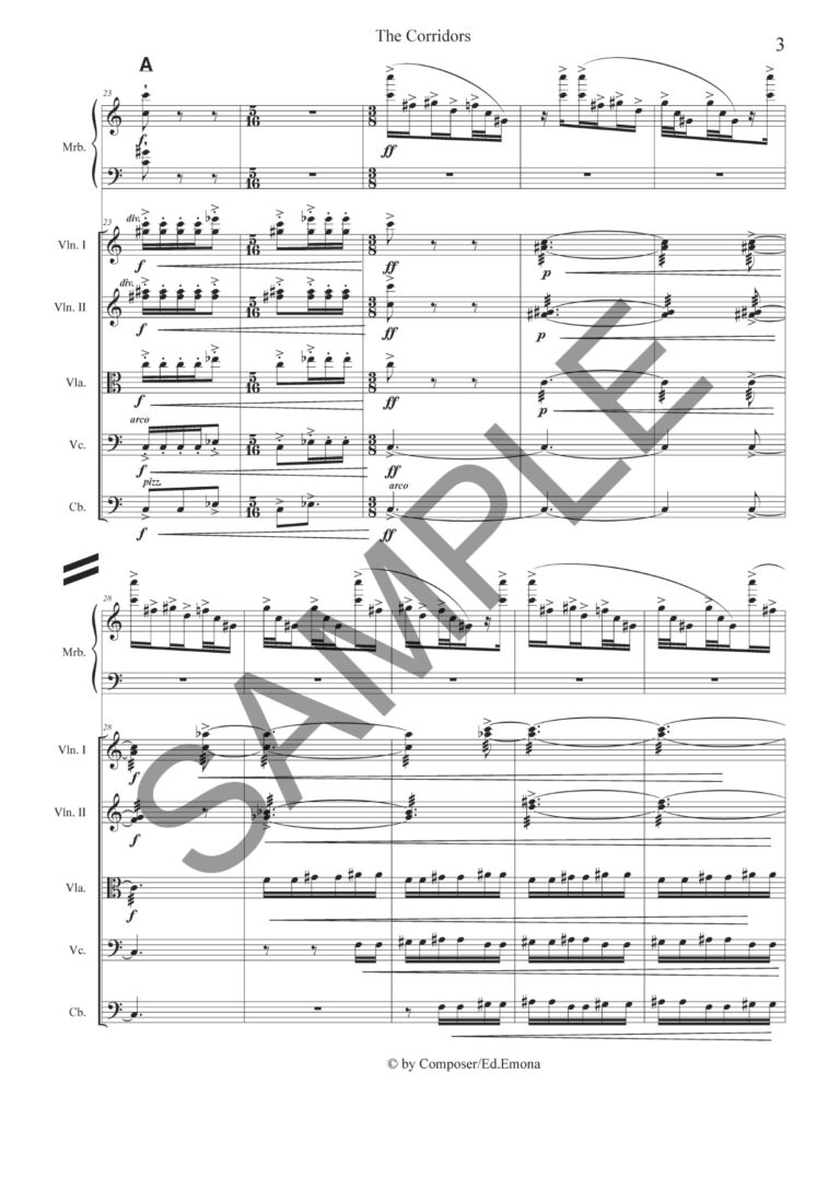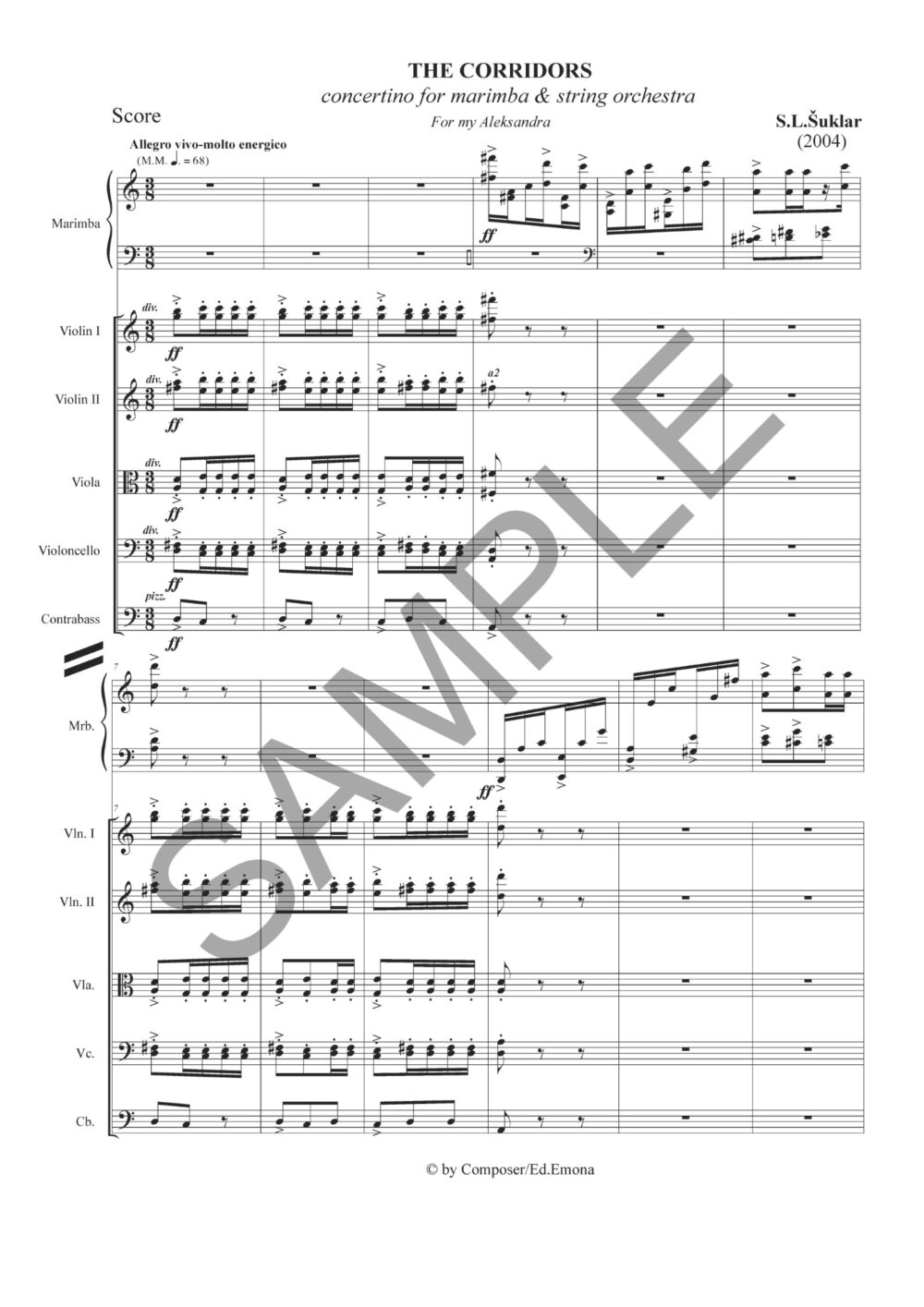 koncert za solo marimbo in godalni orkester, Slavko L. Šuklar, tiskana partitura, posamezni parti samo na izposojo
